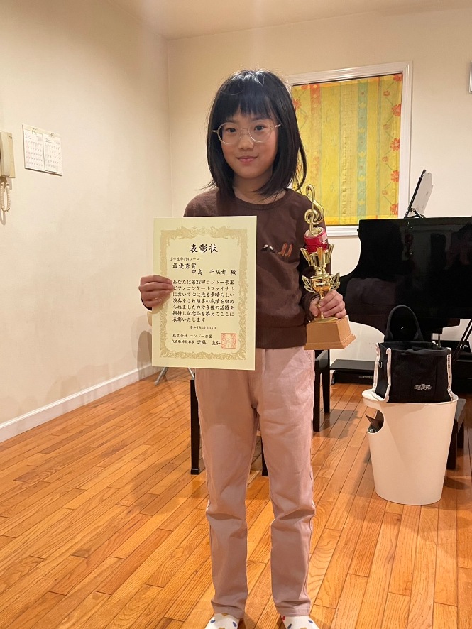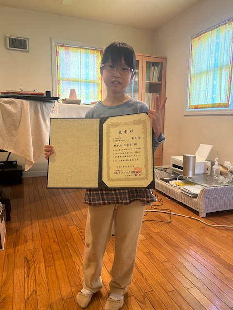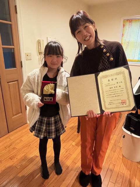 また、生徒さんたちには、ピティナをはじめとした、いろいろなコンクールや演奏会等にも参加させています。ピティナ指導者賞。